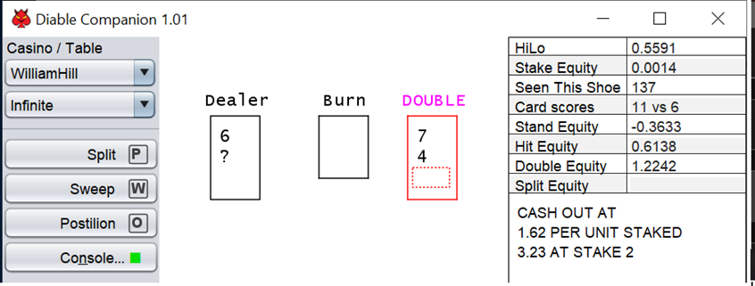 by Paul Lamford The testing of Diable with small stakes has been great fun and the power of the program